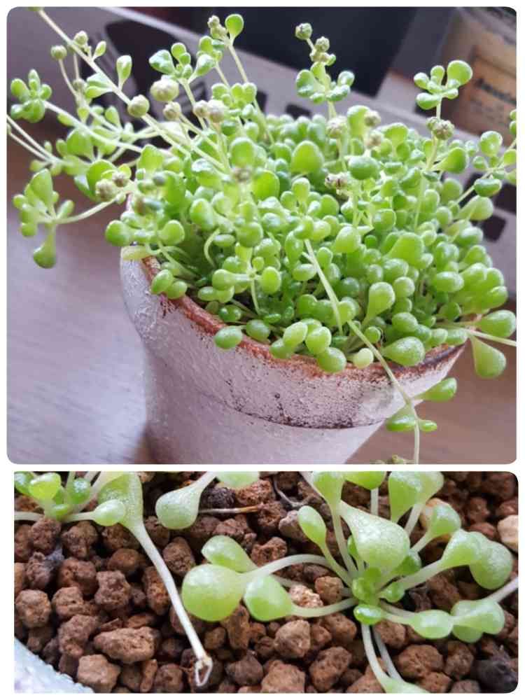 葉挿しから(たぶん)4年が経ち、もりもりになったので、株分けしました。(上の鉢から下の鉢へ)