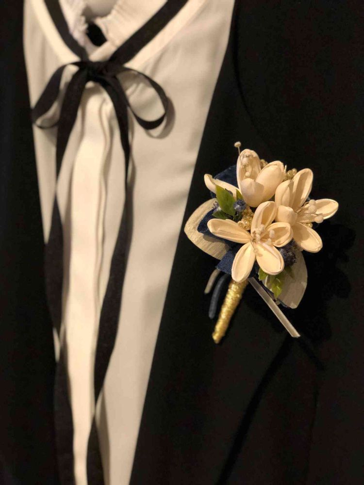 どうせなら、大好きなあの人の作ったコサージュを着けたいと思い、岐阜市の長良園芸さんでお願いしました✨