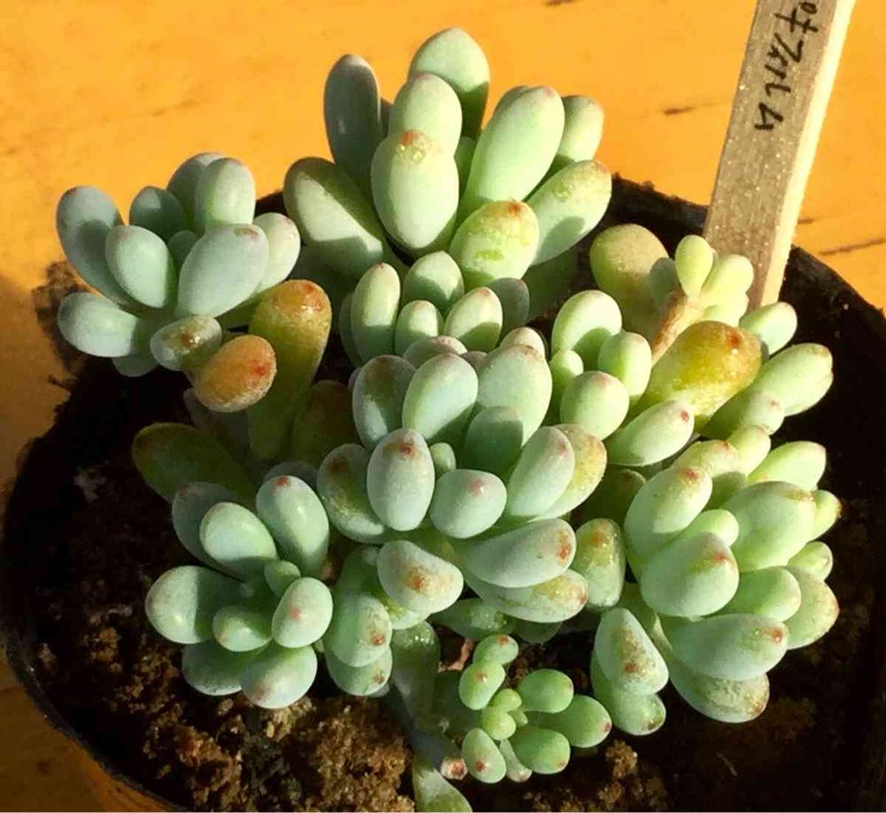ぷっくりとした葉は薄水色、紅葉時にほんのりピンク色に染まります。