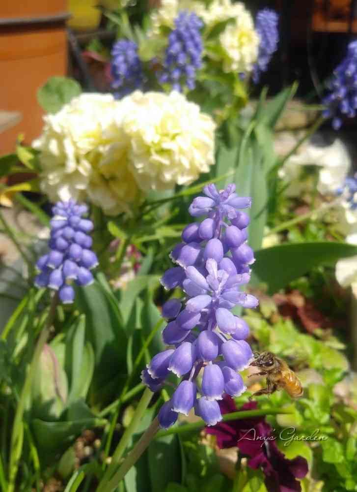 みつばちさん来てくれるのは嬉しいですね❤️ムスカリは甘い香りするのをよく分かっていらっしゃいますね🐝