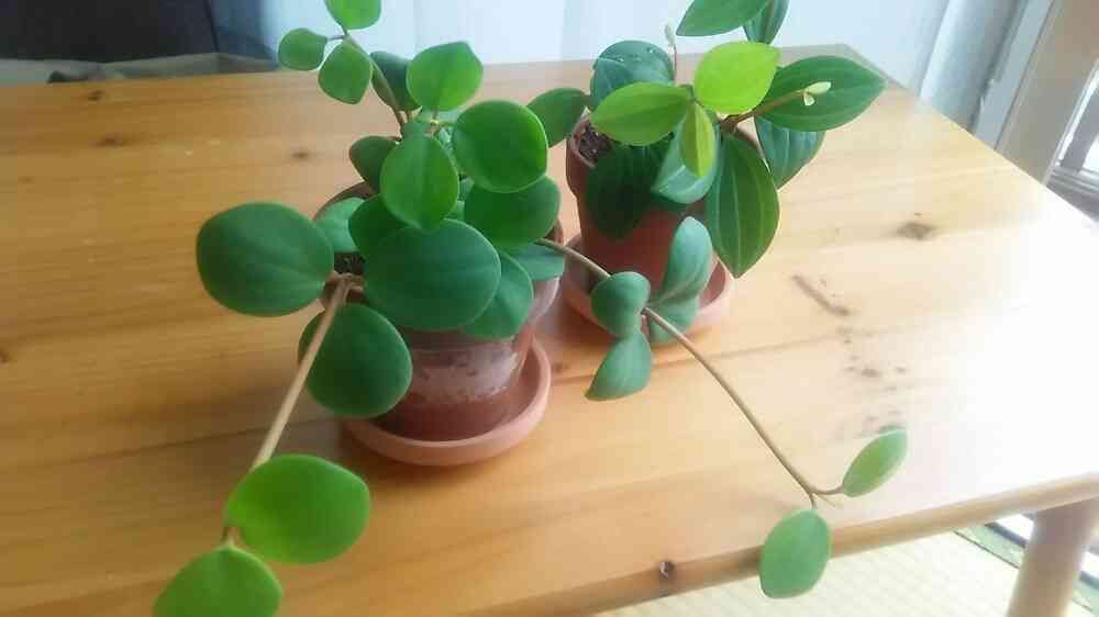 伸びすぎて折れてしまったペペロミアさん。切り離して水につけて...発根したので植木鉢へ...ちゃんと根付いた(*^^*)