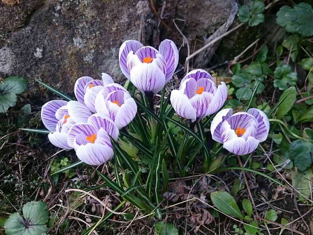 お庭に咲いた斑入りクロッカス何だか大人っぽくて素敵かも( ⁎ᵕᴗᵕ⁎ )💜