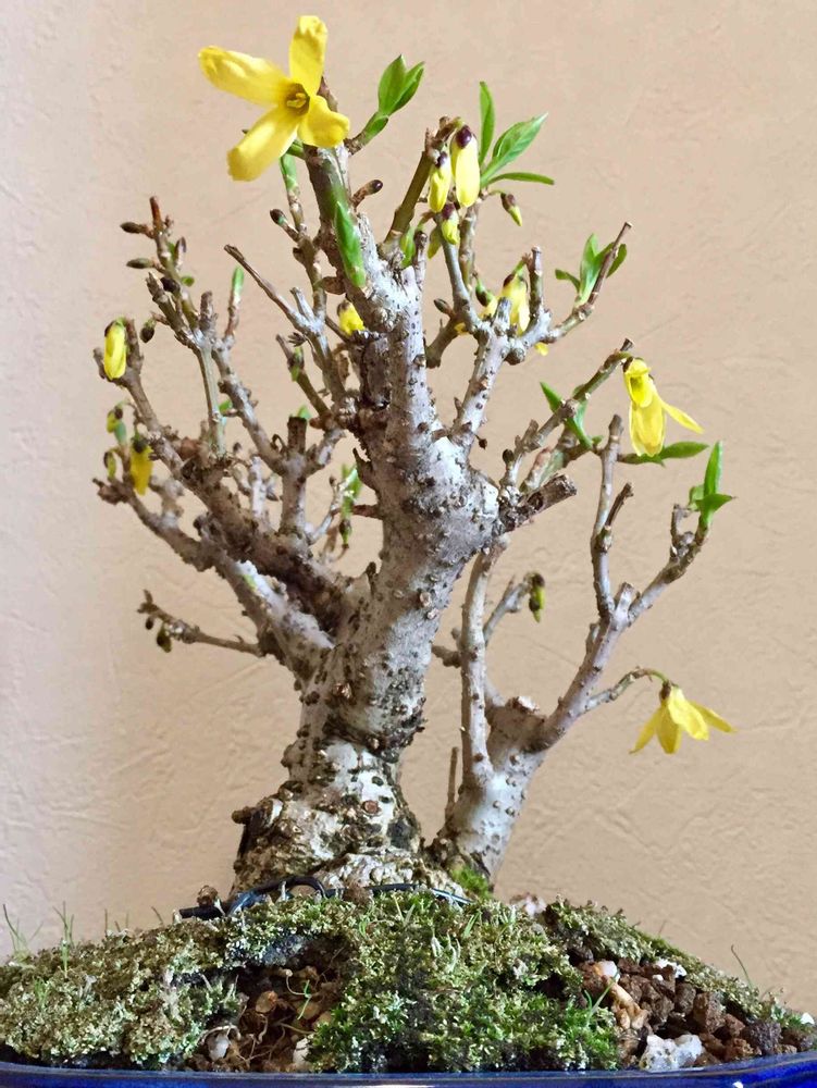 レンギョウの盆栽が見頃を迎えました。