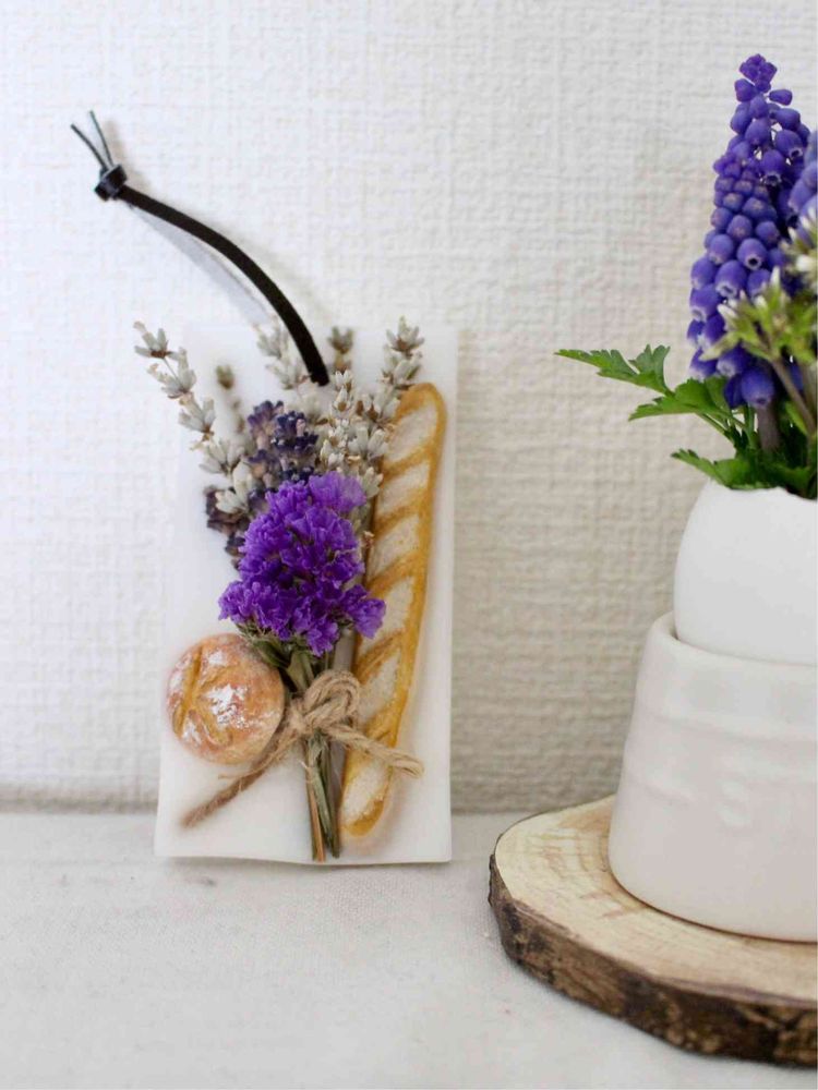 先日のアロマワックスバー作りが楽しかったので、自分でも道具を買ってやってみました。思いつきで自作のミニチュアパン🥖を組み合わせました😄
