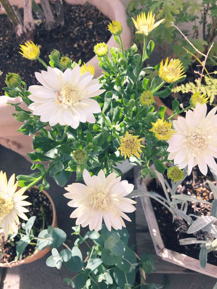 mさんのバルコニー/ベランダ,鉢植えユーカリ,オステオスペルマム ダブルの投稿画像