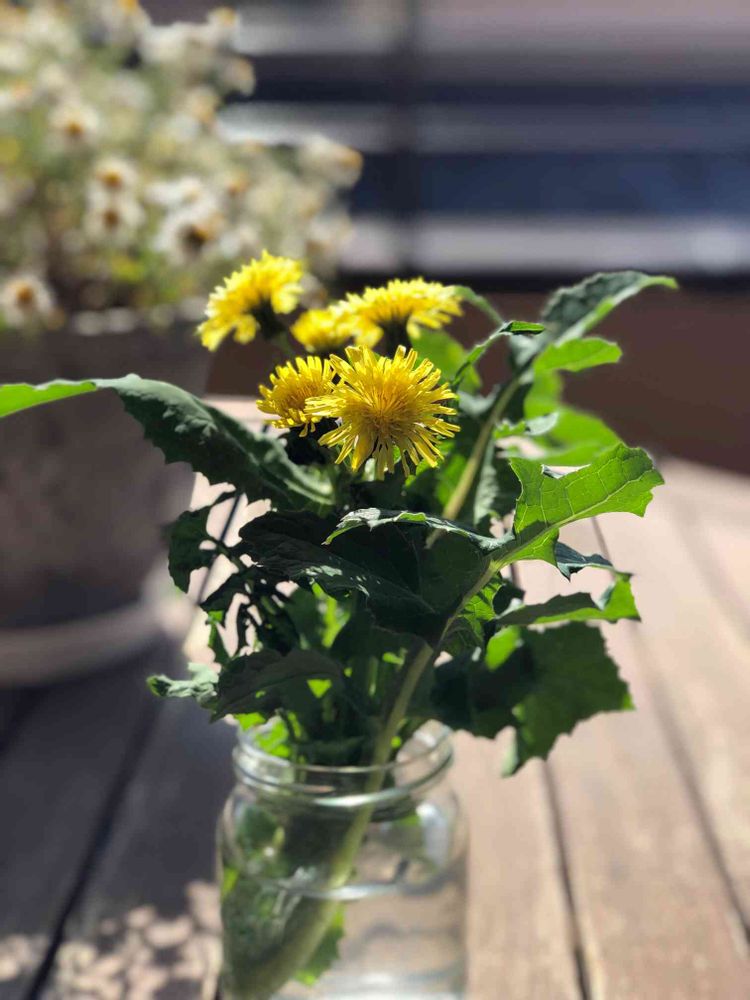 庭の油菜にピッタリくっついて出てきた草。葉を見ると油菜とタンポポを掛け合わせたような?花も同じくタンポポにそっくり‼️自然に交配されたかな?💛