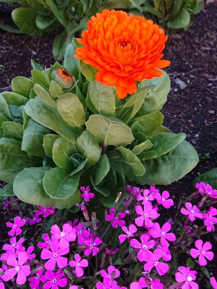 キンセンカとメラコイデスが花壇にきれいに咲きました💮💮💮