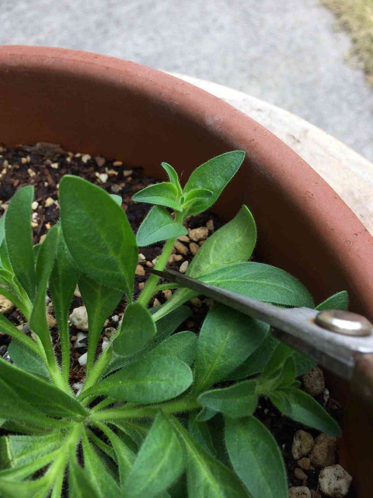 植え付けから2~3週間の内に2~3度摘芯を繰り返すと、ボリュームのある株に仕上がるとのことでやってみるよ〜❗️