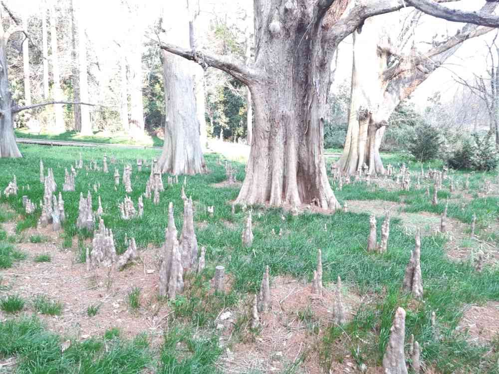 地面からタケノコのように生えているのは、気根と呼ばれるもので、湿った土地でも根腐れしないように地中から出てきている。