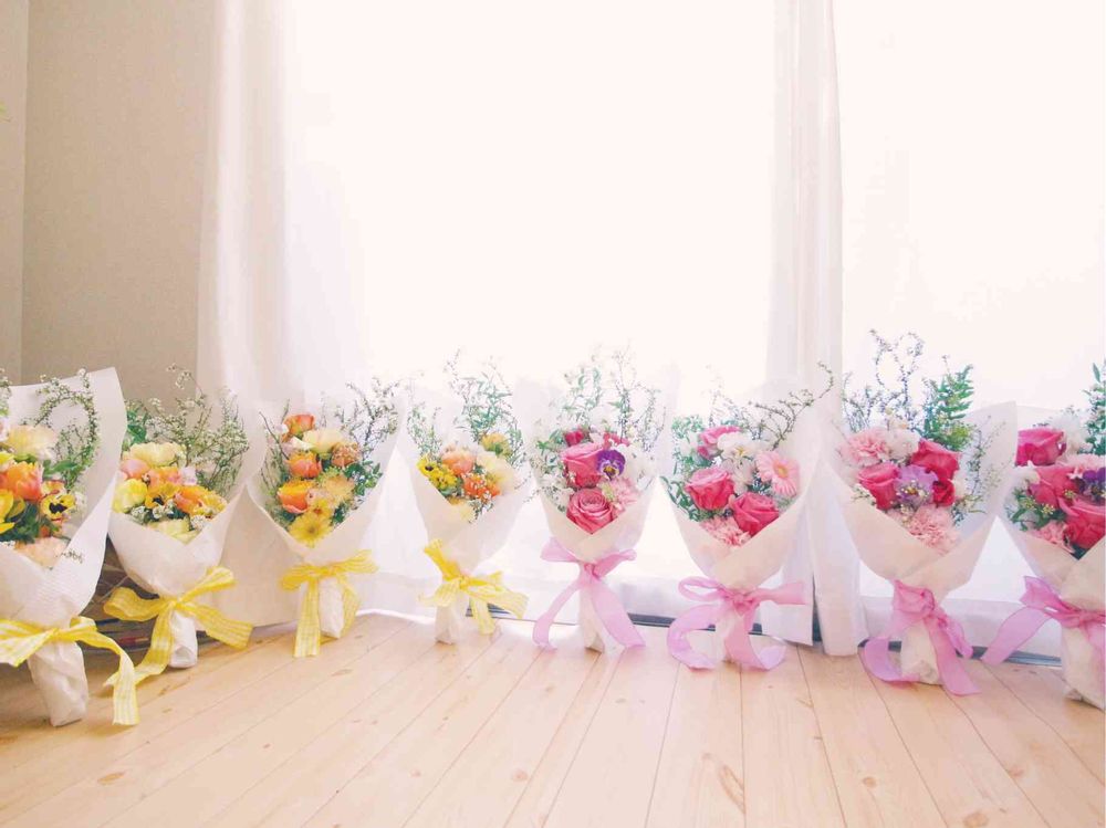 卒業式の花束8つ