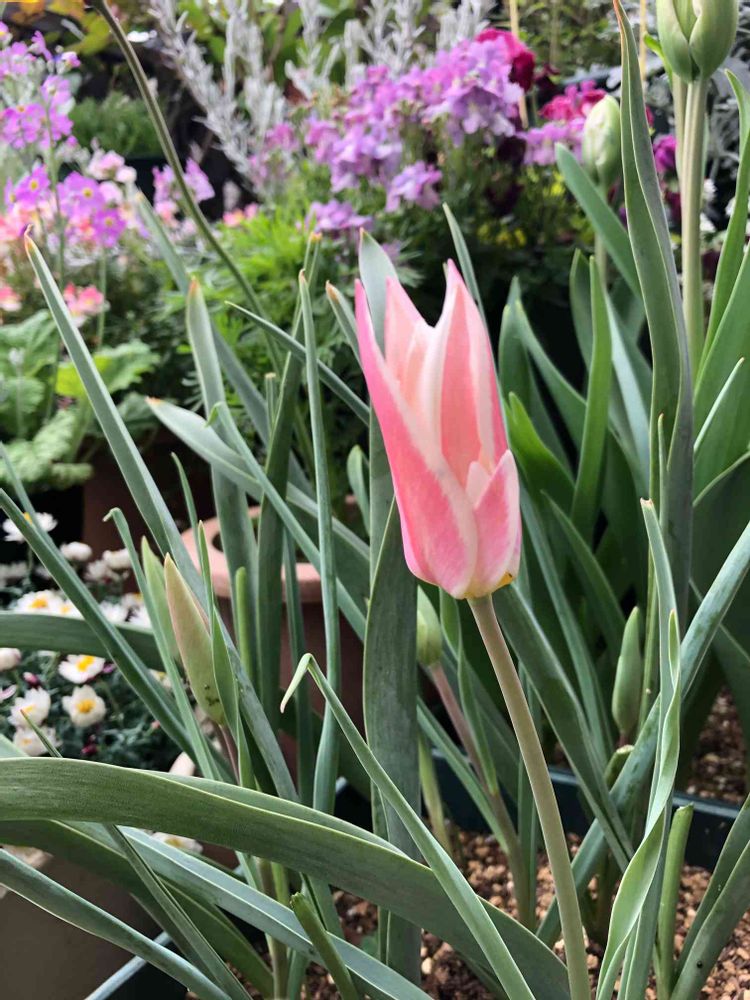 ピンクに白い縁取り、原種もお洒落ですねー😃可愛いチューリップ‼