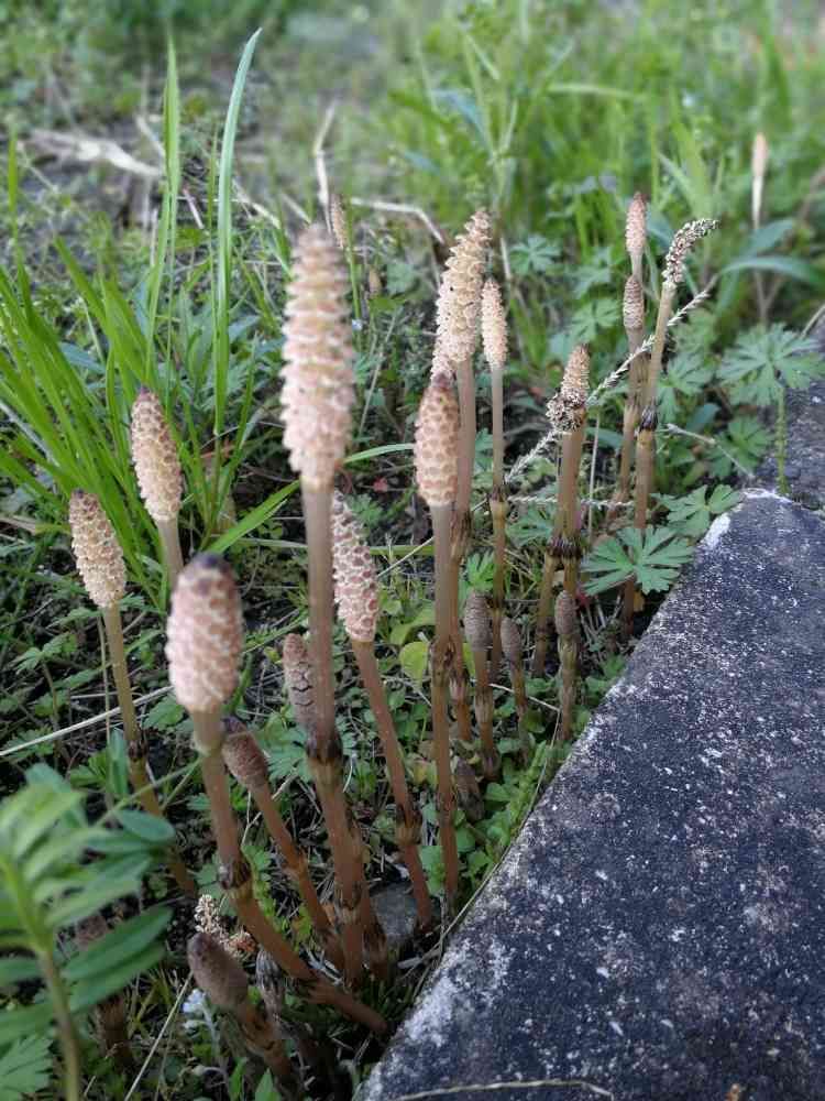 実家の裏庭にて。この時期恒例のツクシたち。チビ助から、ノッポさんまで、たくさん現われてました♪