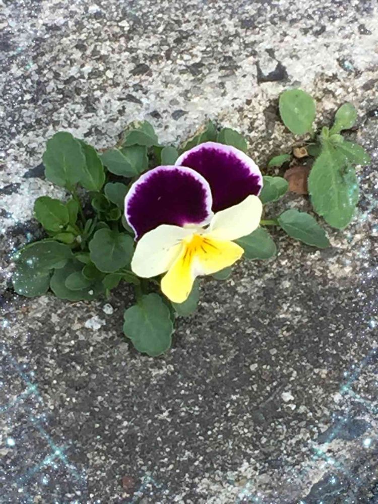 何と我が家の駐車場のコンクリートに挟まれてビオラが咲いてました。
