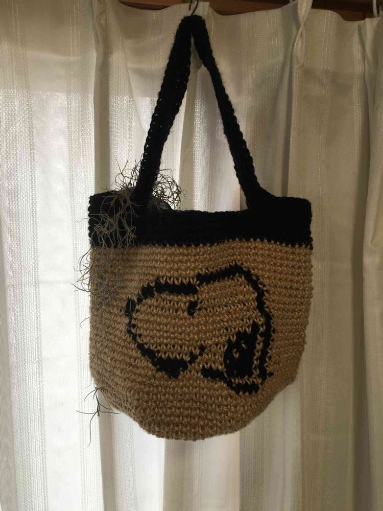麻ひもでバッグは作ったことがあるんですが、スヌーピー模様にしたのは初で〜♪