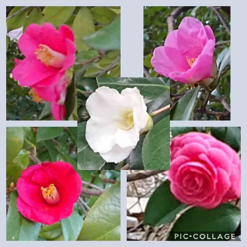 椿はひっそりと咲いてます。紅色や桃色系以外は近くにいかないとわからない。