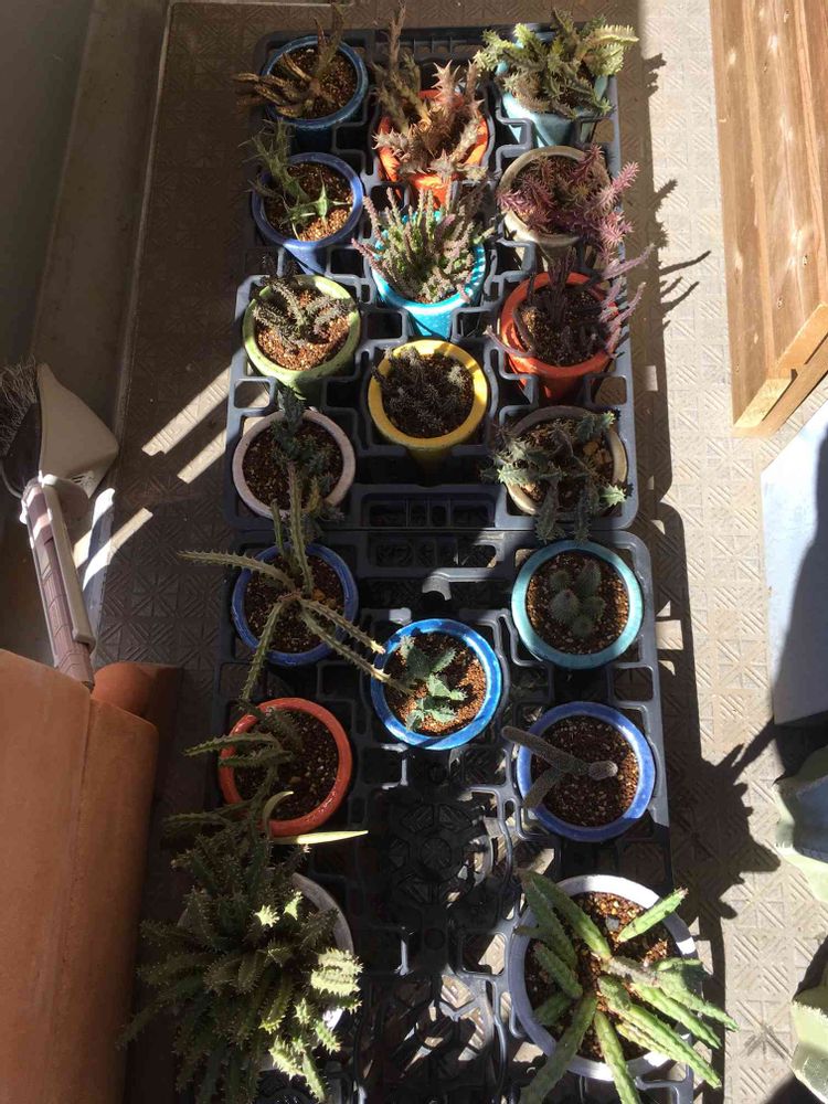 部屋で冬越ししているガガ様たちを久しぶりにベランダへ出し水をやりました!シュワ〜っと水を吸う音が聞こえます🤗