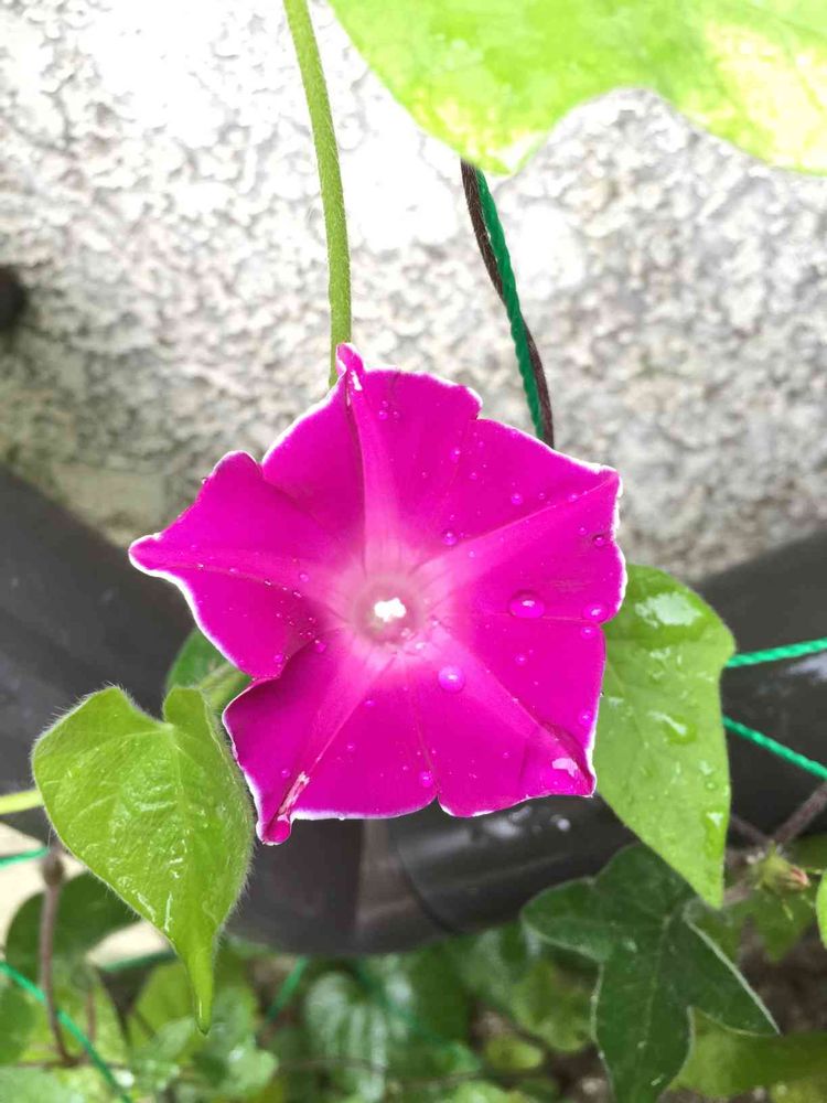今朝は赤紫の朝顔が咲きした( *´艸`)