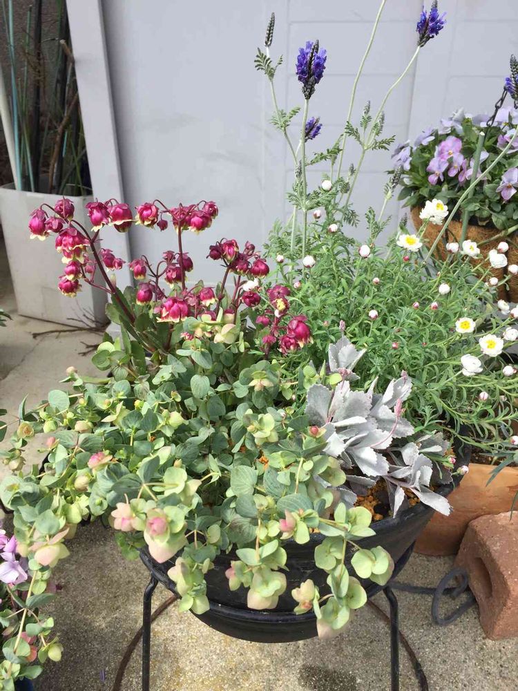 今日は朝から少し曇りがちでしたが、寄せ植え頑張ってみました。