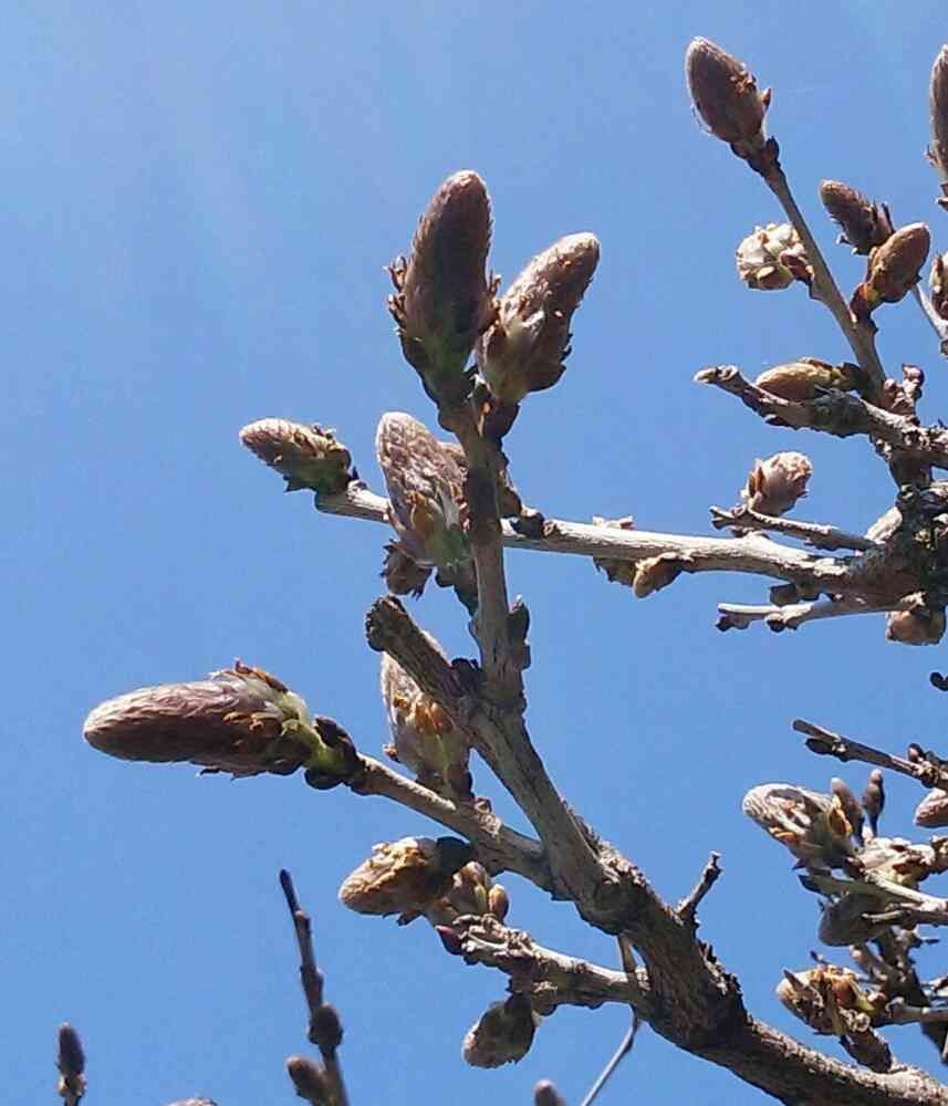 3/24現在なぜかツクシとコブシのツボミの中間風に見える藤の花のツボミ!