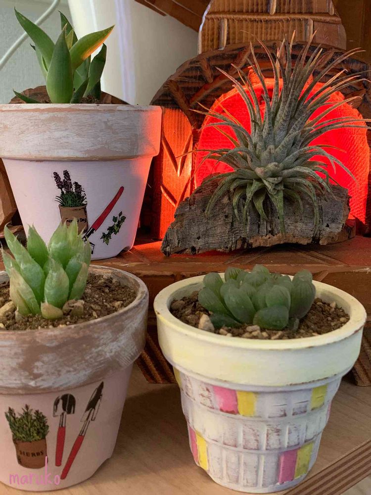 リメ鉢褒めていただいてありがとうございます😊まだまだ塗らなきゃならない鉢があるけどちょっと小休止です😅
