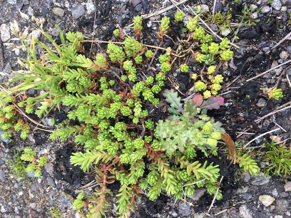 岩場の間と駐車場に野生の多肉植物がいっぱいでした!