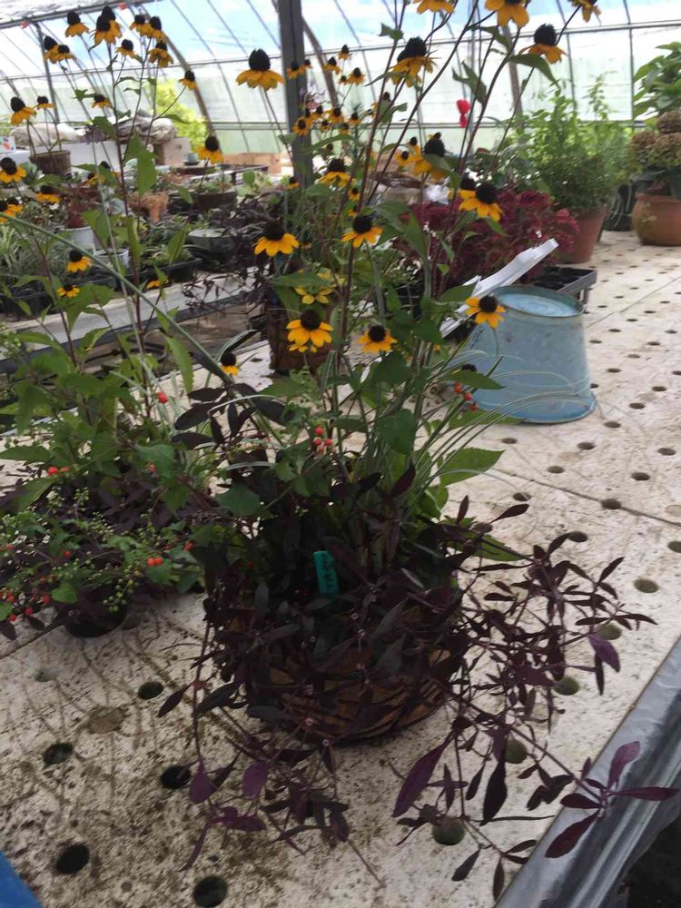 手作りバスケットの寄せ植え。