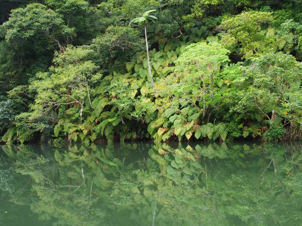 400種を超える魚が住む、生息数日本一の川。しずかな水面に映るシダたちが、たまらん。