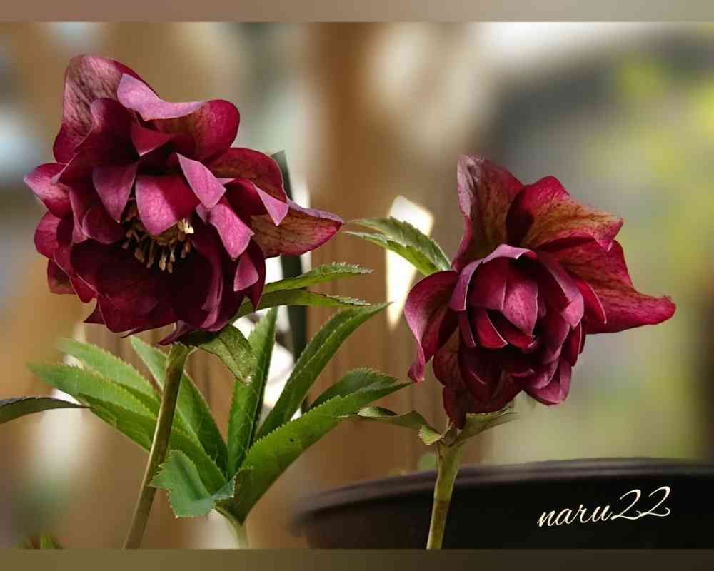 鉢植えのクリスマスローズがうつむきながら咲いています😆🎶