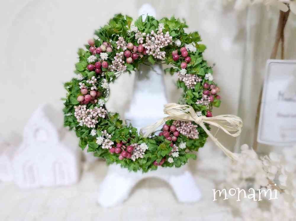 ライスフラワーって、こんな風にリースに入れるととってもアクセントになりますね〜💕💕