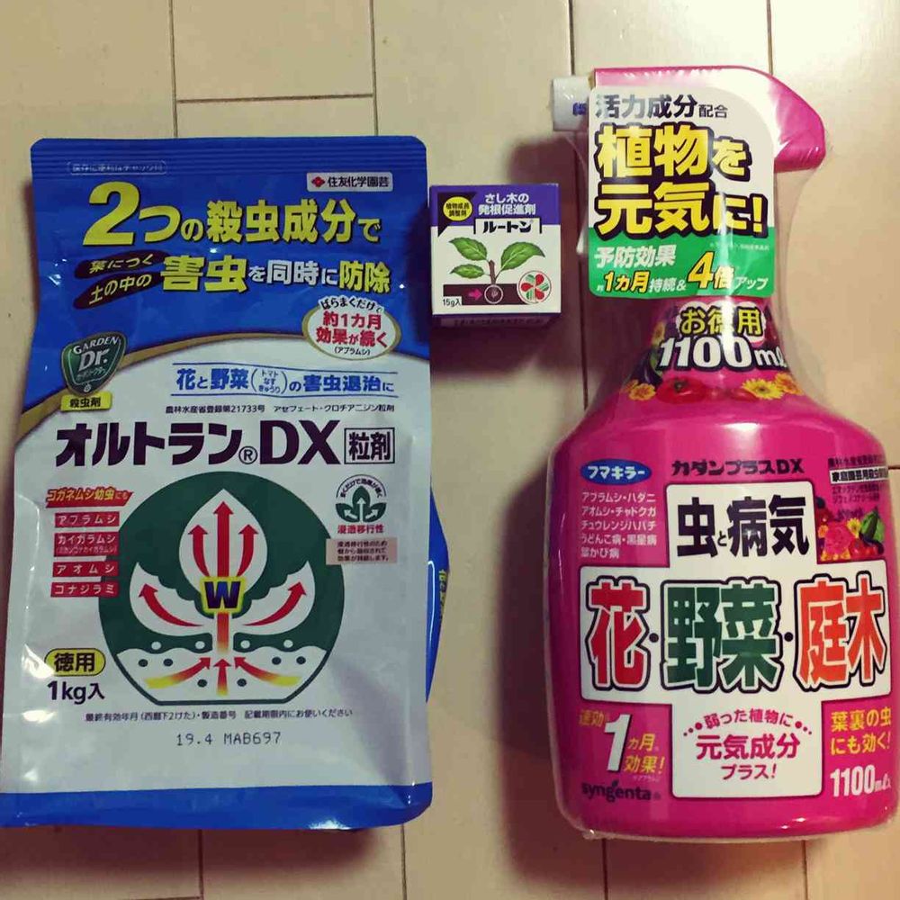 オルトランDXはふりかけた鉢以外は効果はないそうなので、食べ物組を隔離して使ってみようと思います。