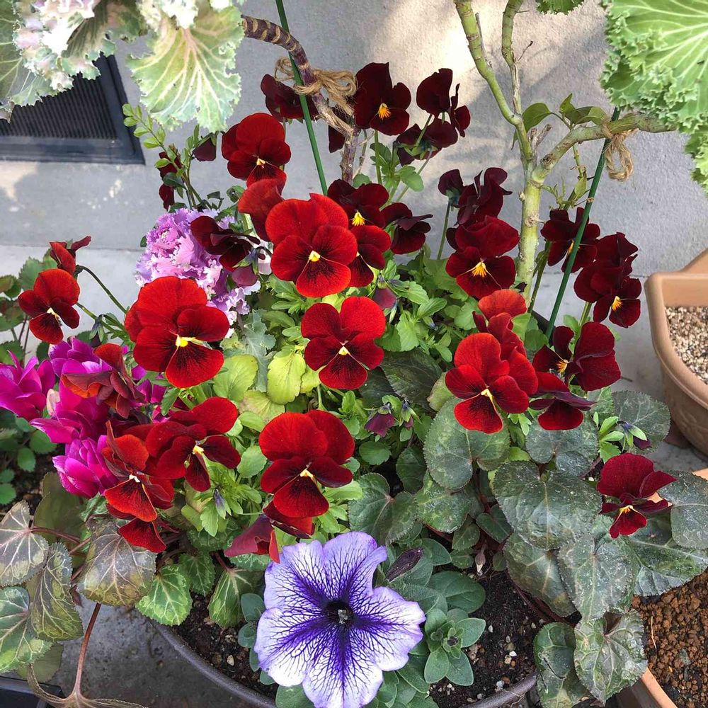 30cmの鉢にこんだけ広がるこの赤ビオラ