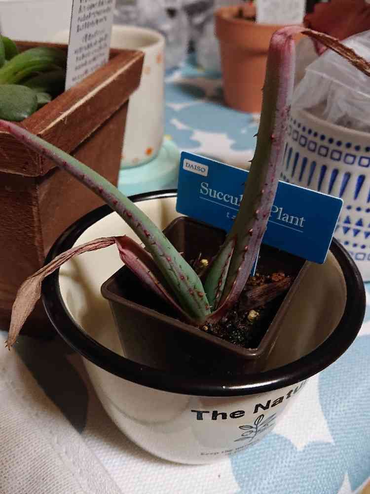 今しがた他の方の投稿を検索してみましたが、だいぶ"ダイソー産スプラフォリアータ"ってあるようですし、図鑑で見ても色味としおれ具合がそれっぽいので、ビンゴなのかもしれませんね