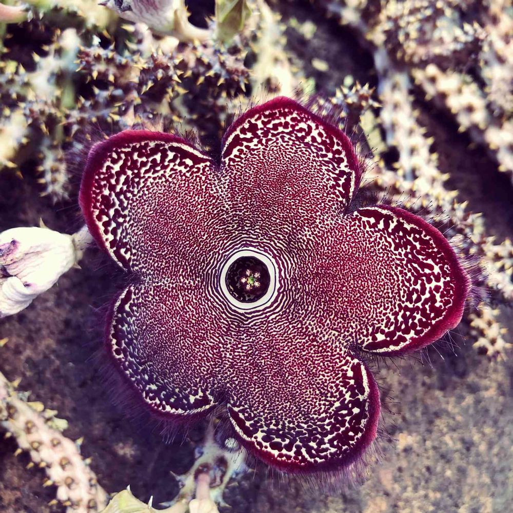 はい!このガガイモ科の花とても大きく吸い込まれそうな柄でした😅オアフ島の植物園で見つけました😉ガガイモ科はうちにはないのですがいつか育てたい🌼です♪