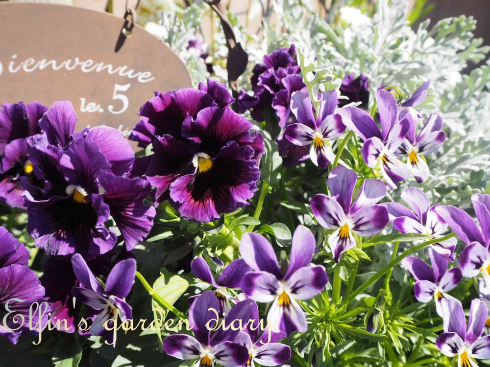 バニータイプのビオラ‘ キングジョージ‘’と名前を忘れてしまったビオラがまだまだ元気に咲いてます...♪*゚