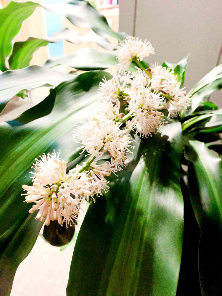 2月に会社のドラセナに花が𖡼.𖤣𖥧