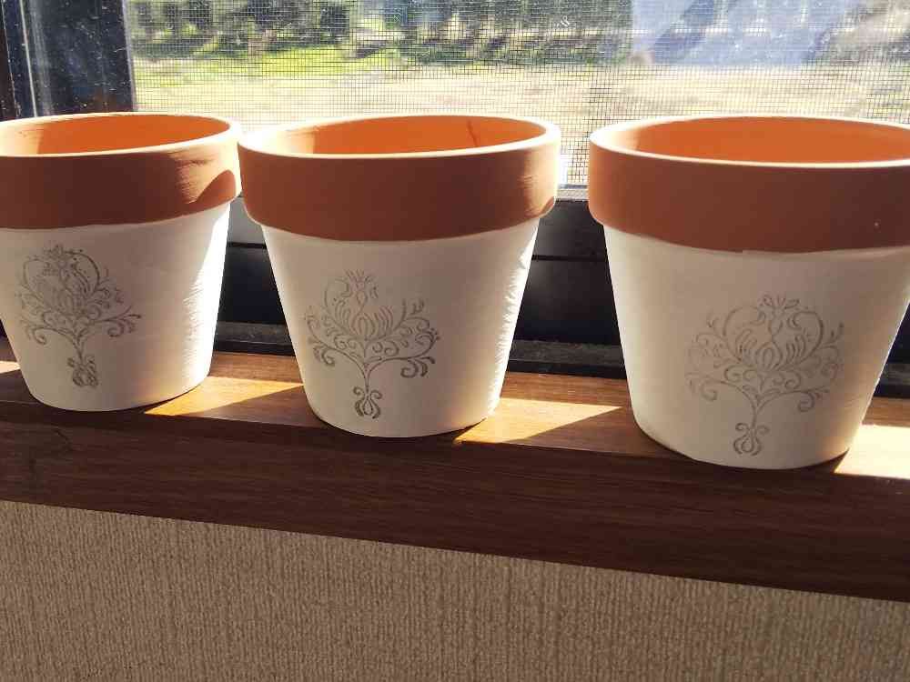 多肉植物を植えるため、ダイソーで買ってきた3つで100円の素焼き鉢。