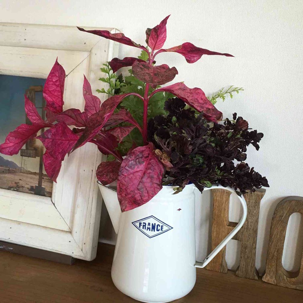 寄せ植えで伸び過ぎたグリーンと、手入れしていて抜けてしまったグリーンを飾って(*^^*)