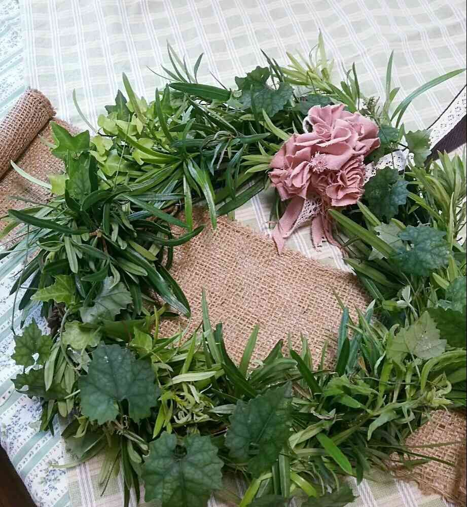 ハンドメイドのリネンのコサージュもいっしょにパチリ
