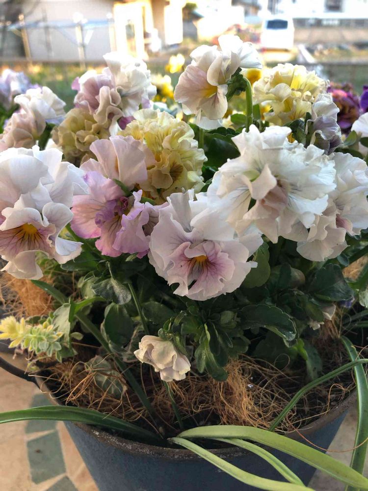 テラス,ムスカリ,パンジー ローブドゥアントワネットの投稿画像