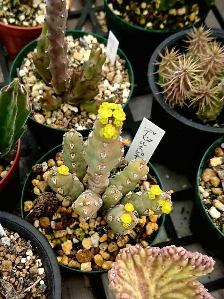四角柱で、あるかなしの棘でユーホルビアに見えず、サボテンにも見えずwww