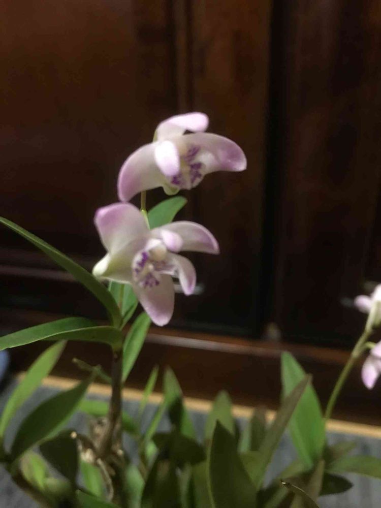 蘭の様な花が咲いいます。薄いピンク色で2センチ程の小さな花です。