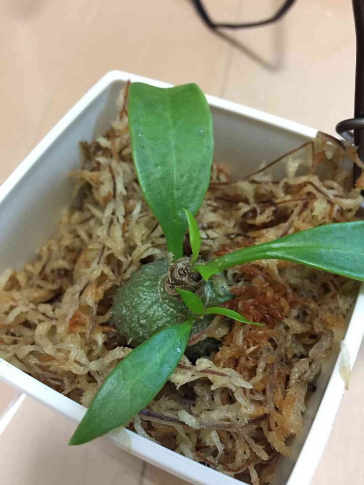 用土をバークチップにして水苔で保湿したら、新芽が出てきた。