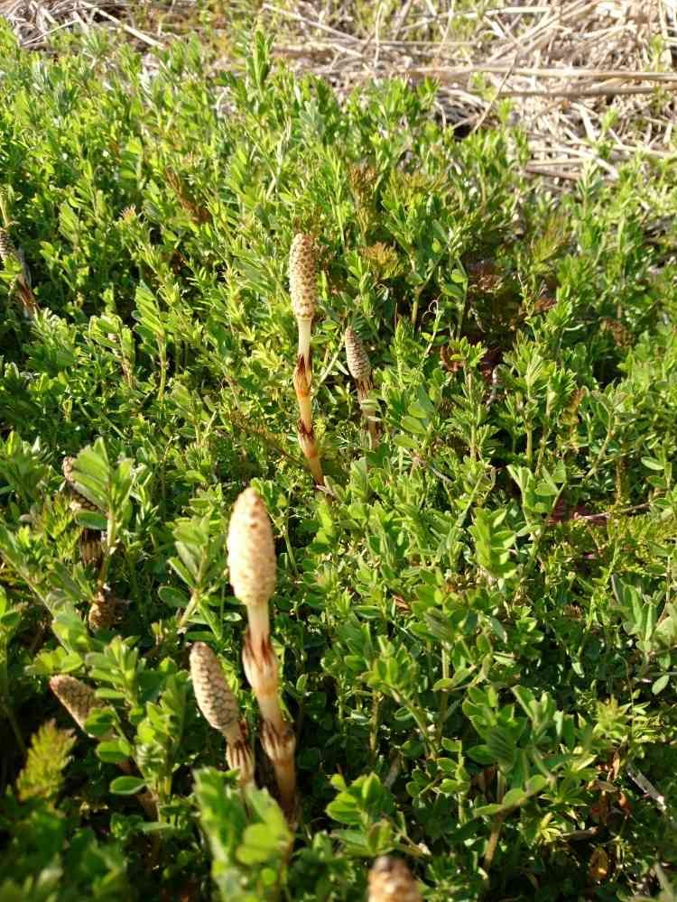 カラスノエンドウの隙間からつくしちゃんが、可愛い~💓春ですね🌿🌸