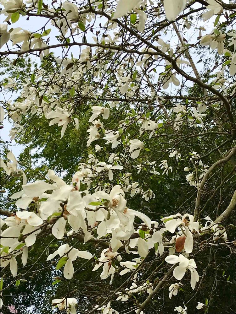 花の下に葉が出ているのと蕊が見えるので良く似ていますがコブシですね〜☺️