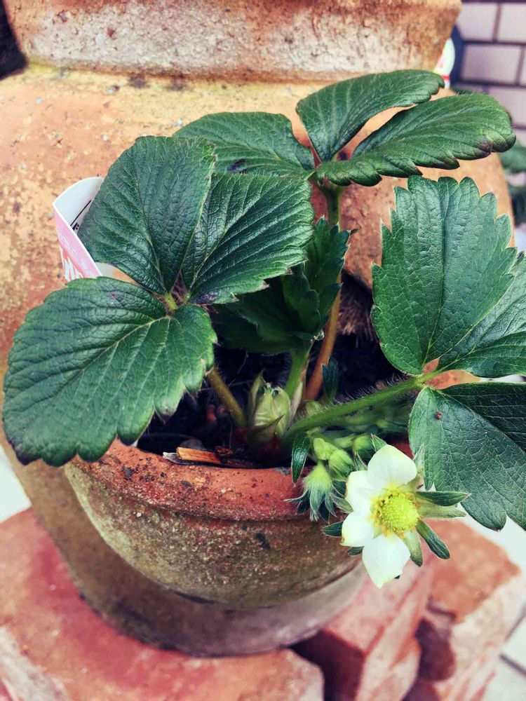 品種のせいか、日当たりのせいか‥。北向きの玄関にストロベリーポットを置いているのが間違いなのかもしれない😑