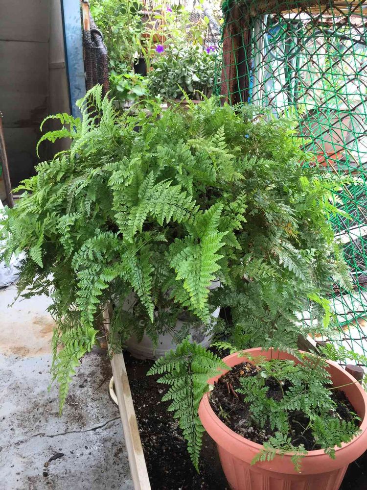 毛の生えた根茎がどんどん伸びてこんな感じに成長してくれました。ハンギングのクサリと引っ掛けがかろうじて残っているのでぶら下げる事も出来るのですが、重すぎていつもは樽におさまっています。褒めて頂き有り難うございます!