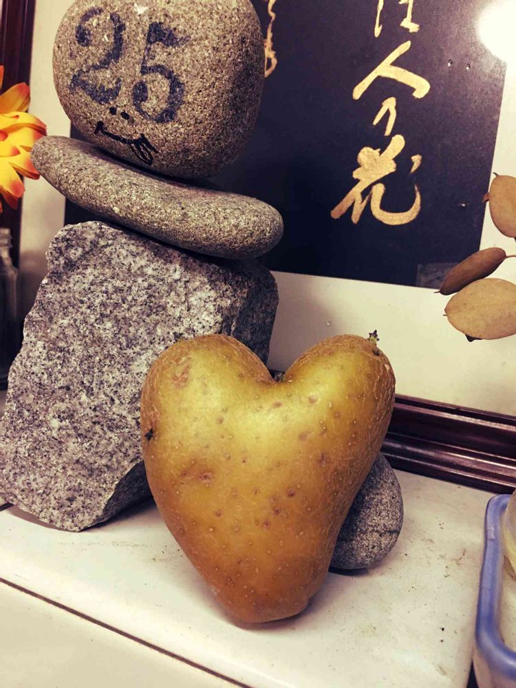 彼女から貰った、💛ジャガイモ 可愛いくて食べれません(-_^)