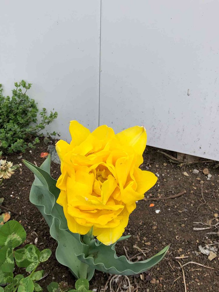 面白い、黄色のバラみないな花のチューリップを見つけました。