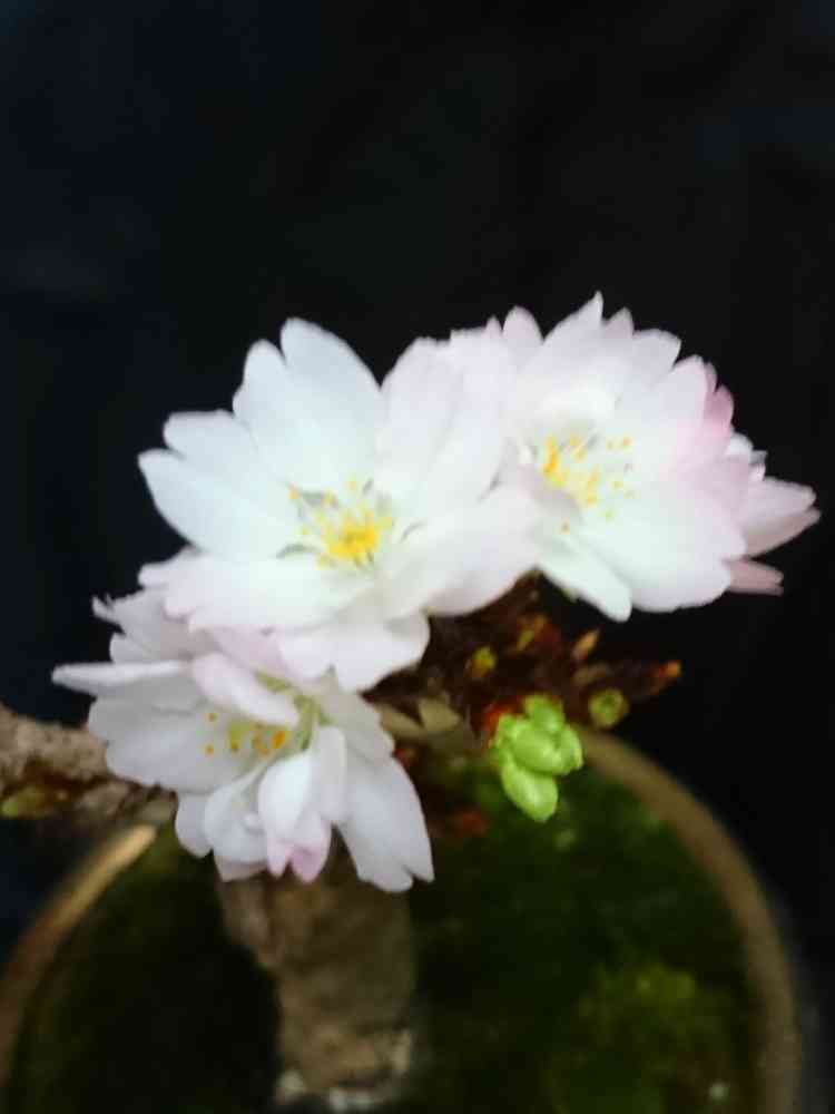今月の盆栽教室で作った旭山桜が気付いたら咲いていました❣️