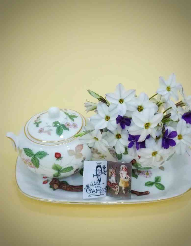 Wedgwoodに散歩道で摘んできたニラバナとスミレです。